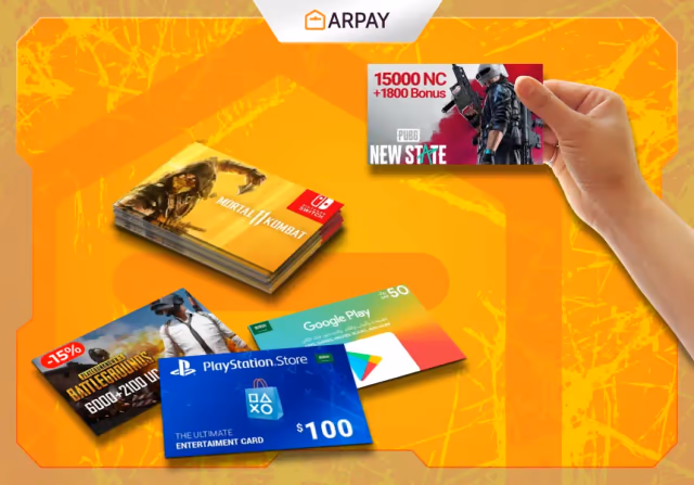 يمكنك العثور على مجموعة واسعة من بطاقات هدايا الألعاب على متجر ار باي، إلى جانب البطاقات المدفوعة مسبقًا الأخرى وبطاقات الهدايا والبطاقات الإلكترونية لمحلات السوبر ماركت والألعاب والتطبيقات.