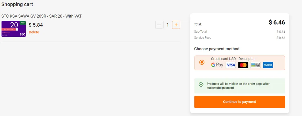 نحن نقبل جميع أنواع البطاقات الافتراضية بما في ذلك بطاقات الائتمان والخصم التي يمكن التخلص منها، إلى جانب البطاقات المادية الصادرة ضمن شبكة VISA و Mastercard. ويرجى التأكد من تمكين بطاقتك للمدفوعات الدولية عبر الإنترنت، حيث نعتمد على (3D secure payment) وهي طريقة الدفع باستخدام الرقم السرى المؤقت المرسل من البنك لكل معاملة شراء أون لاين، وفي حالة عدم تلقيك أي كلمة مرور لمرة واحدة عبر رسالة نصية قصيرة أو إشعار دفع لإتمام الدفع لطلبك، يرجى الاتصال بالمصرف الذي تتعامل معه حتى يتمكن من مساعدتك بشكل أكبر.