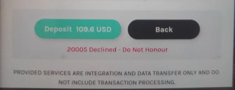 عدم احترام أو رفض المعاملة من قبل جهة إصدار البطاقة هي الرسالة الأكثر شيوعًا والعامة لمعاملات البطاقة التي يرفضها البنك. يشير إلى أن البنك المصدر لن يتحقق من صحة المعاملة. يحدث هذا بسبب العديد من العوامل مثل الخطأ في الكتابة ، وعدم كفاية الأموال ، ولكن يمكن أيضًا حظر البطاقة للمدفوعات عبر الإنترنت.