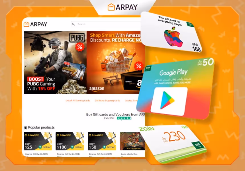 ARPay Gift Cards son vouchers digitales que puedes comprar en ARPay, una plataforma de e-commerce que vende tarjetas prepago, gift cards y e-cards.ARPay Gift Cards pueden usarse para comprar cualquiera de los productos o servicios que ofrece ARPay, como: