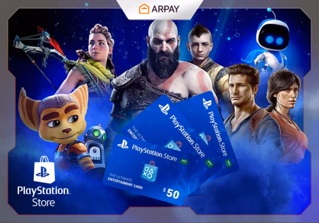 ¡Desbloquea el poder del juego con lasPlayStation Store gift cards de AR-PAY! Explora las colecciones de PlayStation Store para todas las dimensiones y países donde te espera la magia gaming.