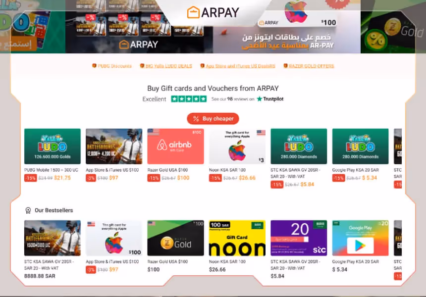 ARPay es una empresa emiratí fundada en 2014 por HKS Group para crear una forma simple y cómoda de comprar y vender tarjetas prepago online. Su misión es conectar a compradores y vendedores de tarjetas prepago mientras ofrece beneficios útiles. Estos incluyen una amplia selección de tarjetas prepago en categorías como supermercados, juegos y aplicaciones, precios competitivos y descuentos, múltiples opciones de pago incluyendo tarjetas de débito, tarjetas de crédito y PayPal, y entrega rápida de tarjetas prepago por email. ARPay también proporciona guías de canje en su blog para ayudar a los usuarios a canjear tarjetas en el sitio web o la app del comerciante, junto con atención al cliente y un programa de fidelidad. La plataforma se presenta como fiable y reputada, con miles de clientes y socios satisfechos, y declara que cumple con las leyes y regulaciones relevantes relacionadas con e-commerce y protección de datos.