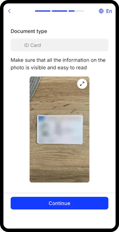 - Un selfie: Esto garantiza que tu foto coincida con el documento de identidad enviado y ayuda a prevenir el fraude.