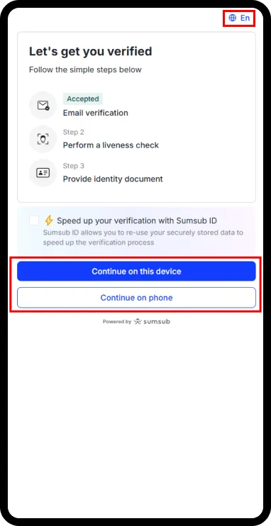 Paso 4. Selecciona tu idioma preferido y elige una de las dos opciones para iniciar el proceso de verificación