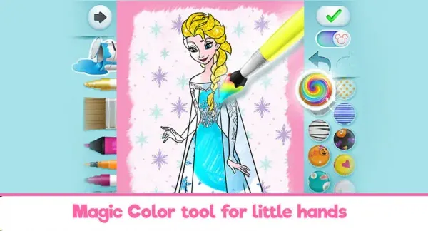 Disney Coloring World app uygulaması, çocuğunuzun tüm çocukların sevdiği Disney prenseslerinin çizimlerinin yanı sıra Pixar’ın karakterlerini ve daha fazlasını içeren ünlü Disney çizgi filmlerinin çoğuna erişmesini sağlar.